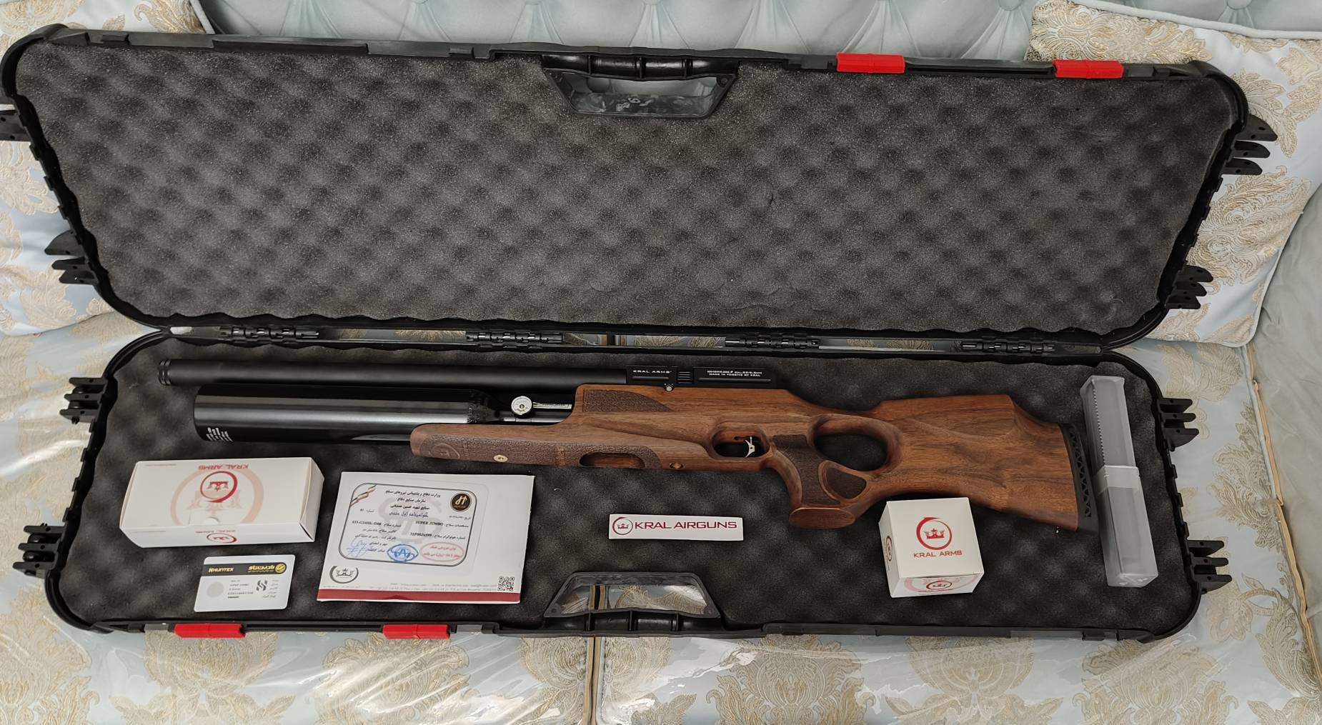 لوازم همراه: سایلنسر، دوعدد خشاب ۱۲ تیر، خشاب تکی، نازل شارژ، ریل پیکاتینی و… .